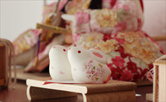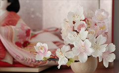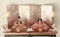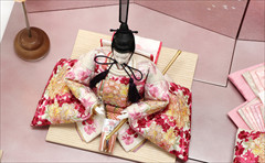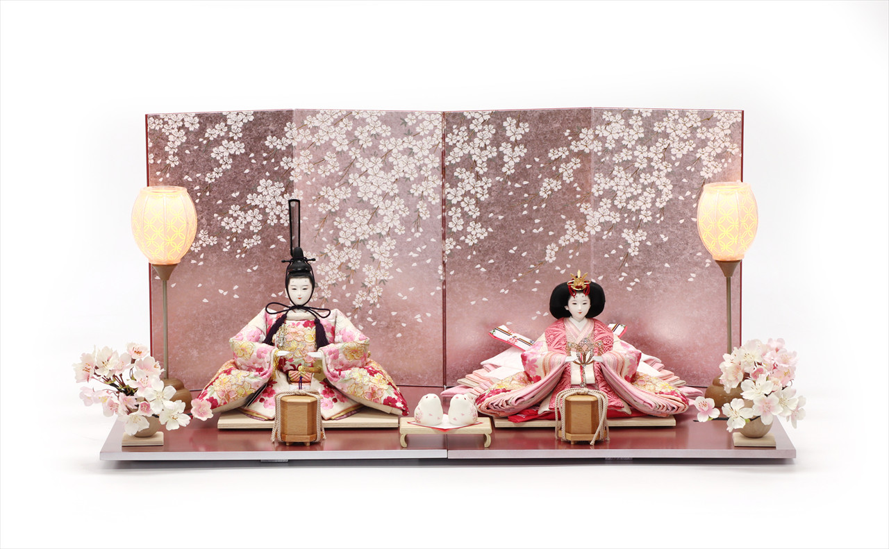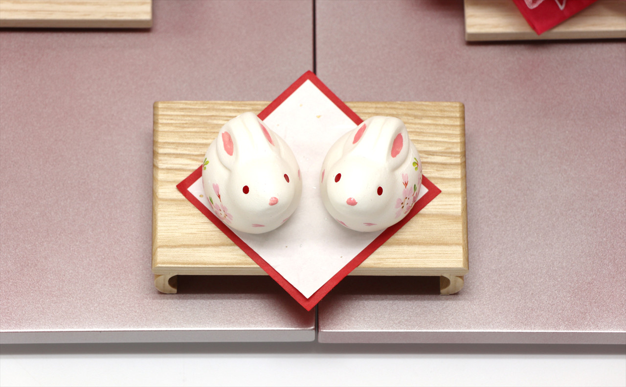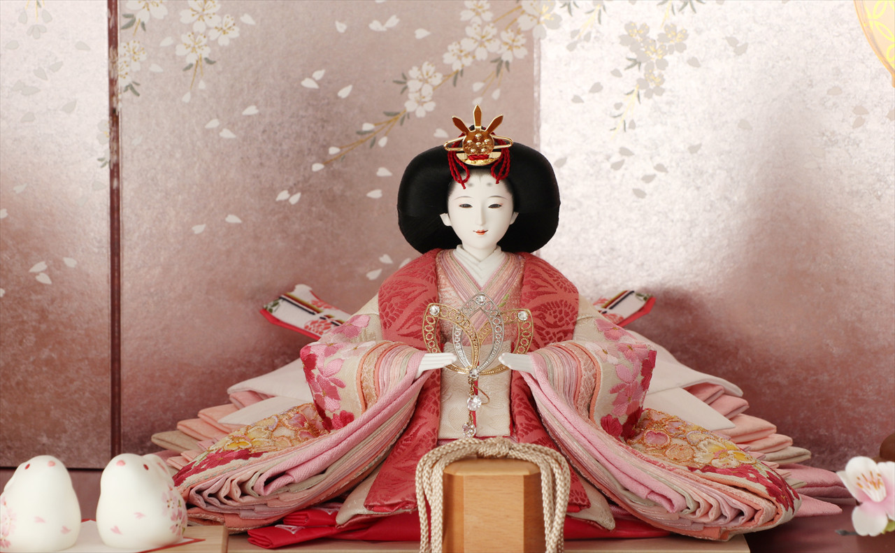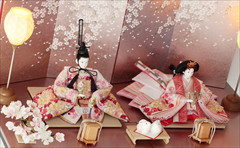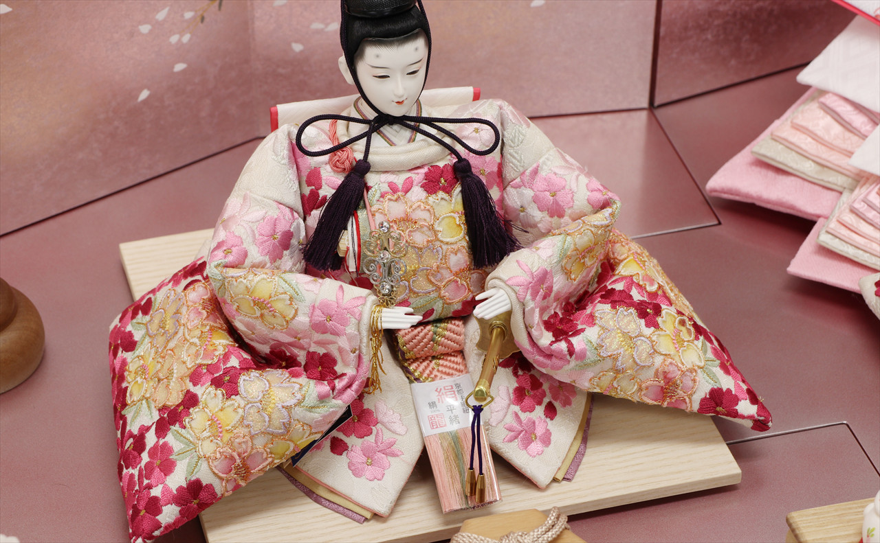色は少ないほうが簡単・シンプルでセット組みがしやすいのですが、こちらの作品のように、あえて色を多く使うためには様々な工夫やアイデアで雛人形を引き立てる空間を作ります。