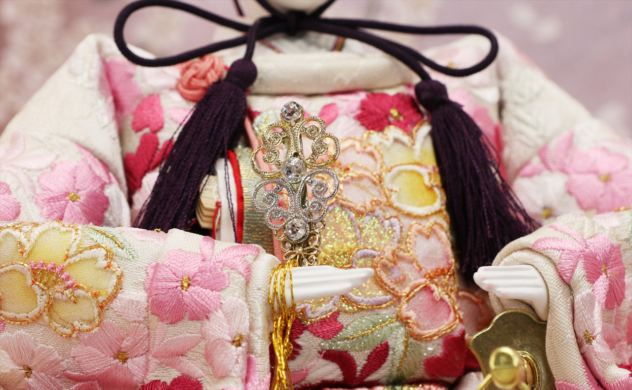 こちらの作品はその一つですが、様々な花びらの桜が衣装全体に隙間なく刺繍されています。