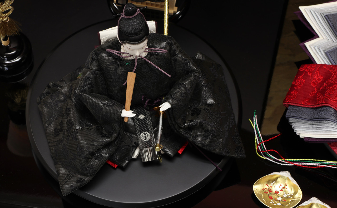 黄櫨染・黄丹・黒・白の雛人形