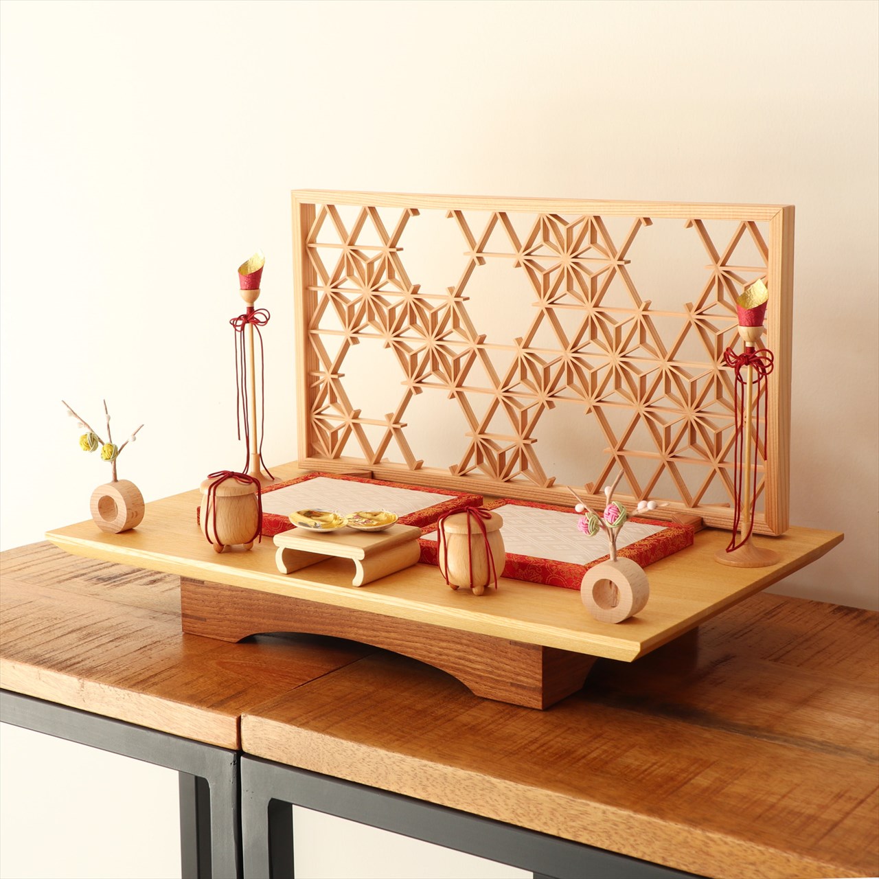 飾台・収納箱と屏風のセット