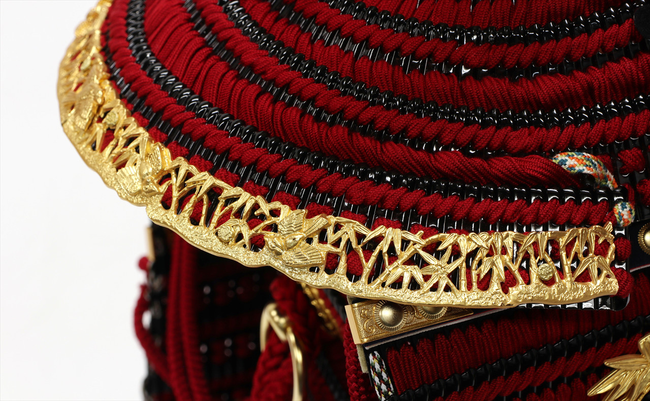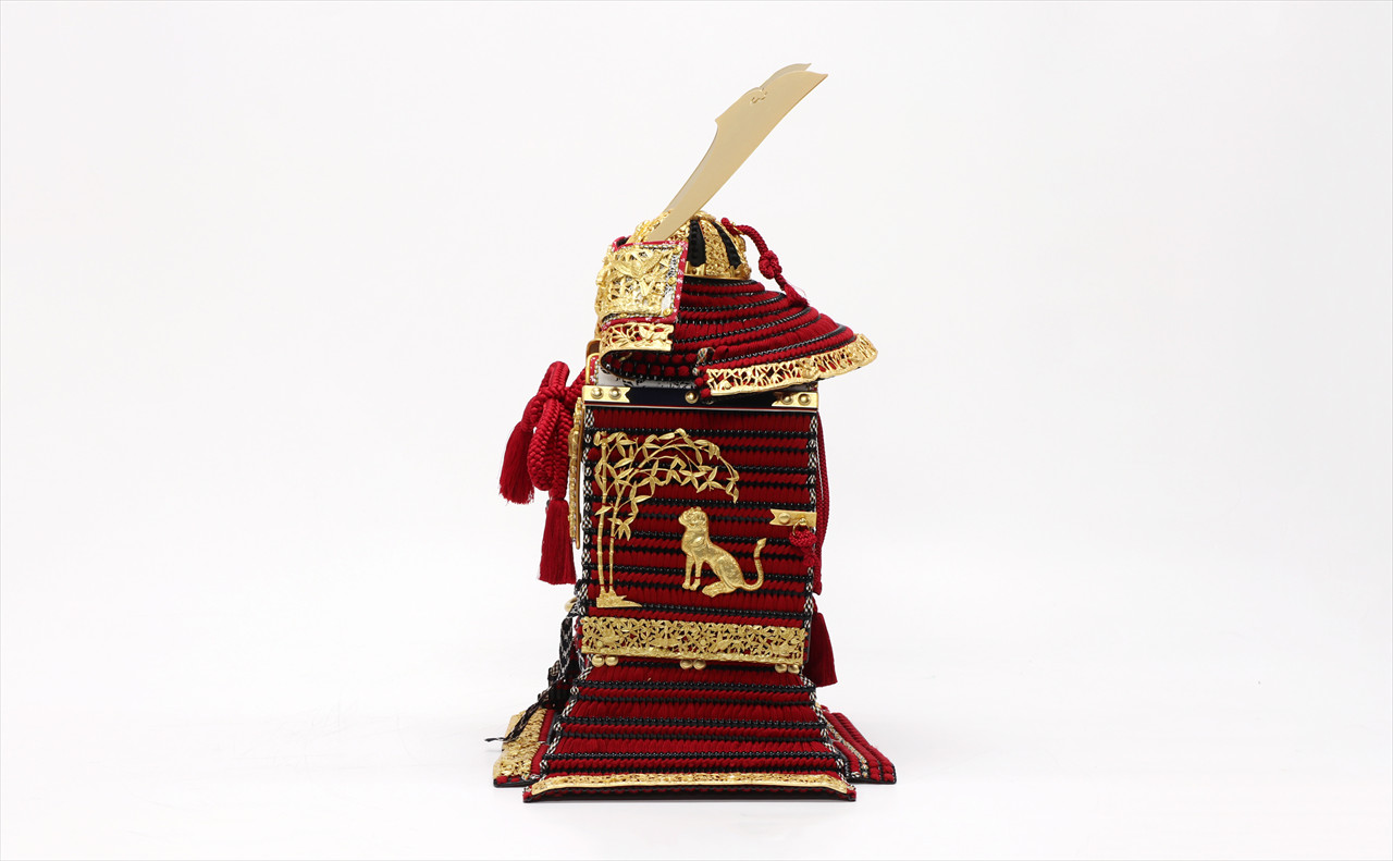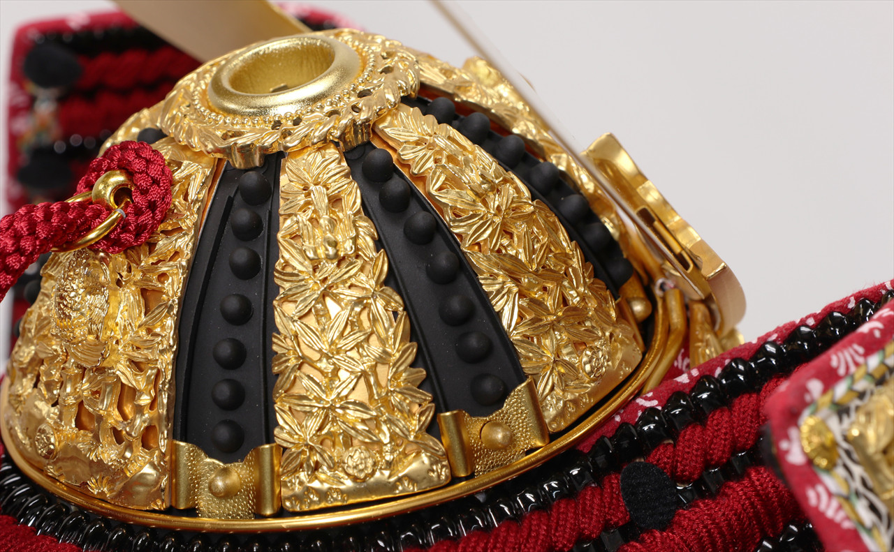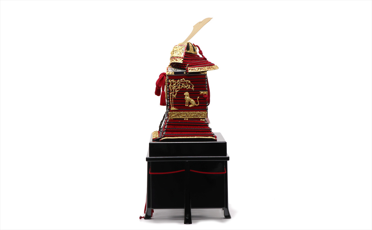 金具の装飾のみならず、兜のシルエットも同様に仕立てる苦心がうかがえます。