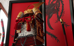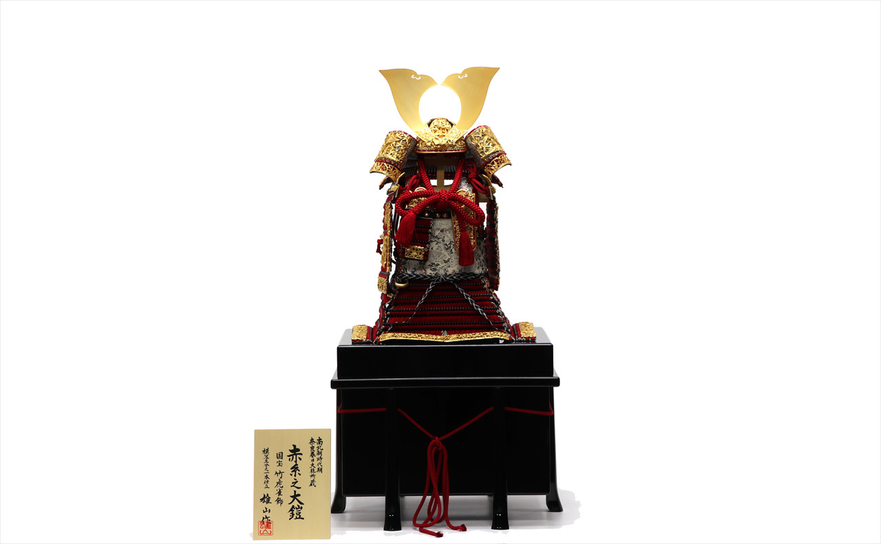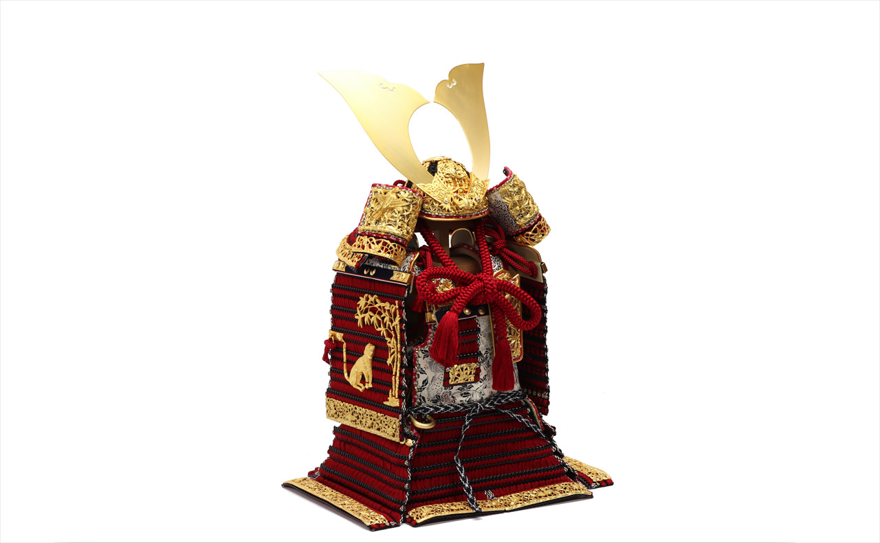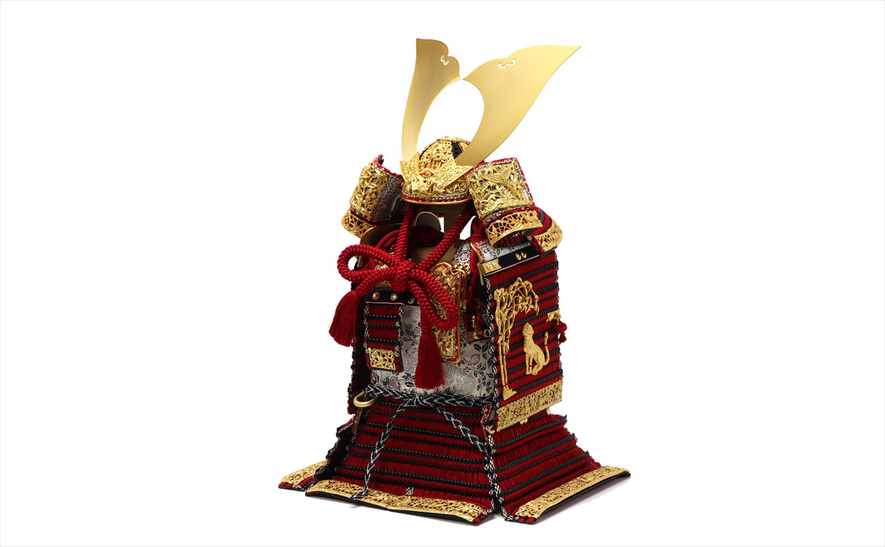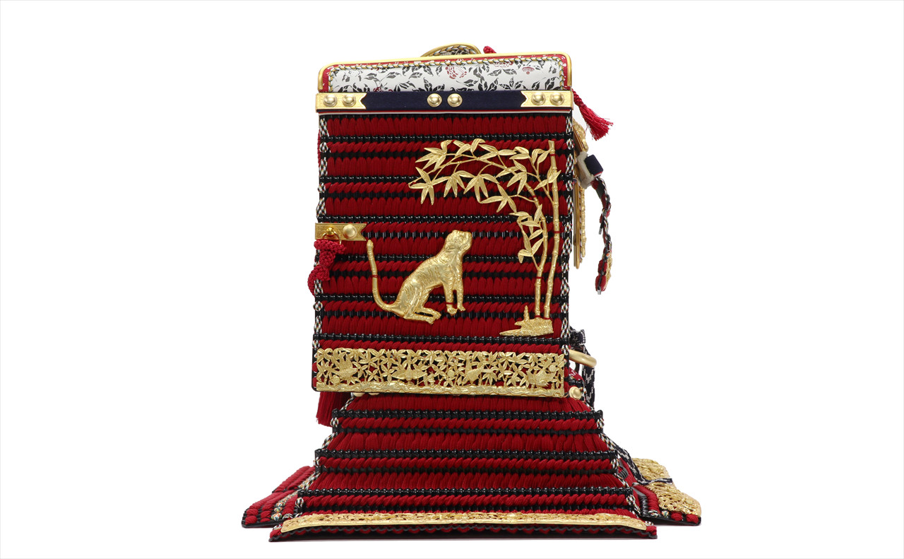 金具の装飾のみならず、兜のシルエットも同様に仕立てる苦心がうかがえます。