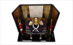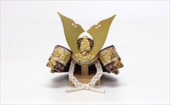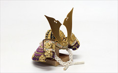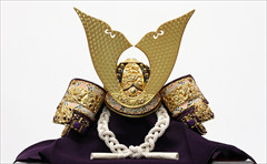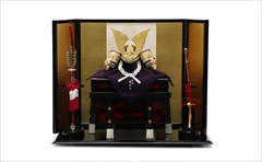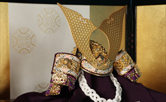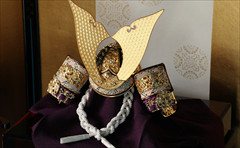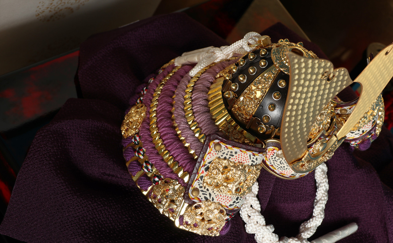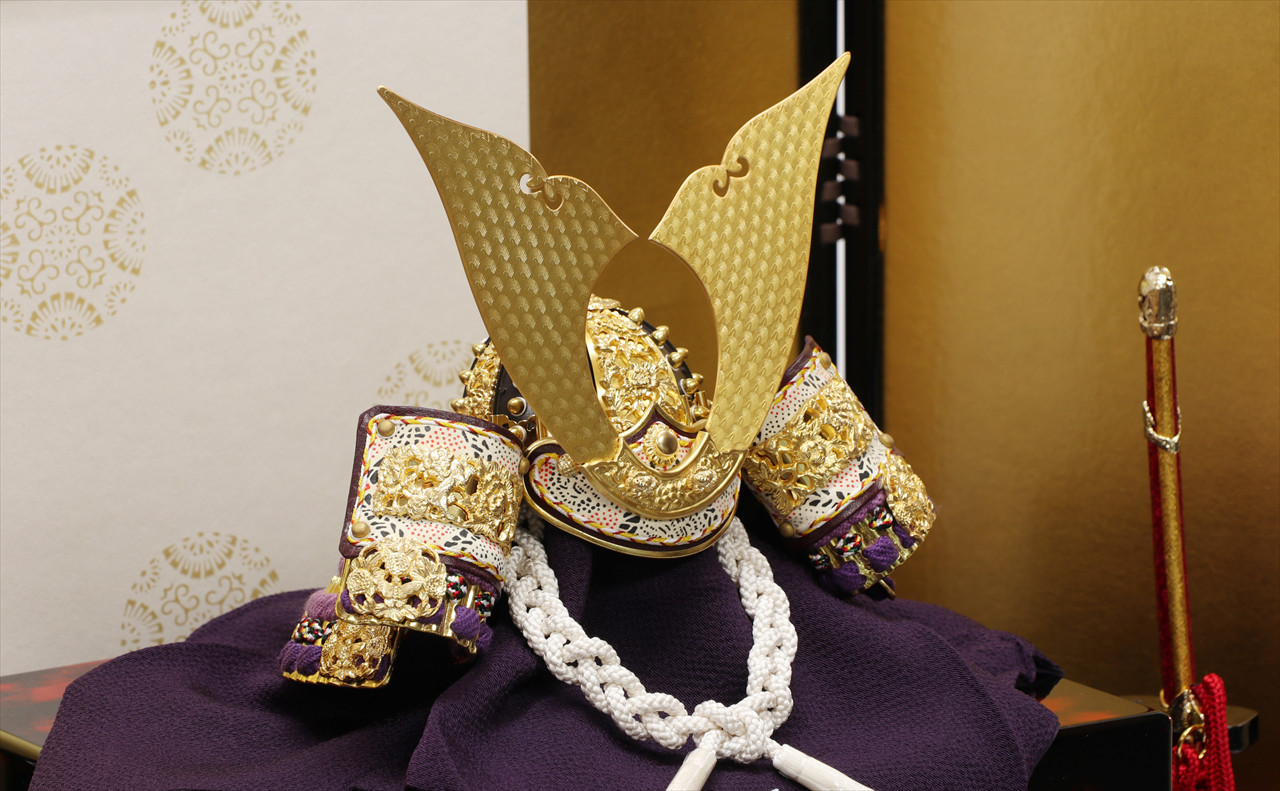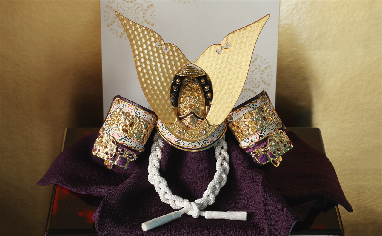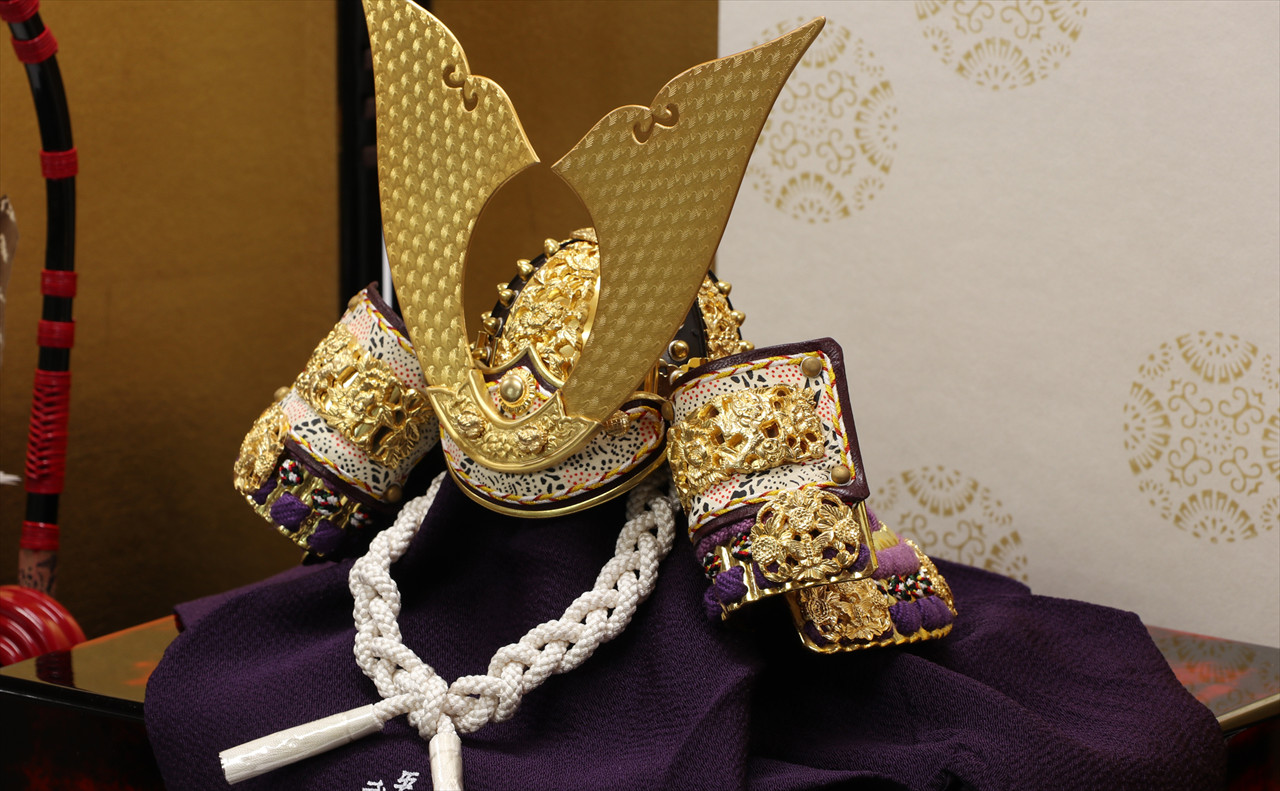 一般的な金具はプレス成形による大量生産です。そのため商品が違っても同じ飾り金具の五月人形はよくあります。 しかし、総裏のそれは電鋳加工で作られた金具が使われます。電鋳加工は専門的な用語・製法ですが、複雑な形状や精度が要求されるものを成形する技術であり、 武久の甲冑の金具のように細かく微細な形状を実現します。品質は高いのですがコストも相応にかかるため総裏のような一部の甲冑にのみ使用されます。