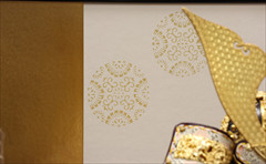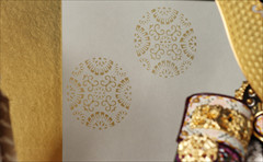 平安武久では、このでこぼこが平らになるように和紙を貼り重ね慣らします。そしてその和紙に本金箔を貼り付け、その上に漆塗りを施していきます。 漆が下の金箔の色と光をある程度透過することで「白檀塗」と同じように飴色に輝きますが、これを「裏打ち」と言います。