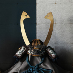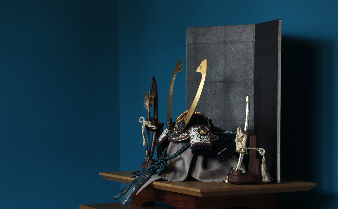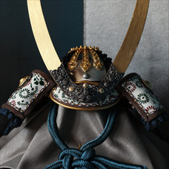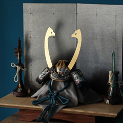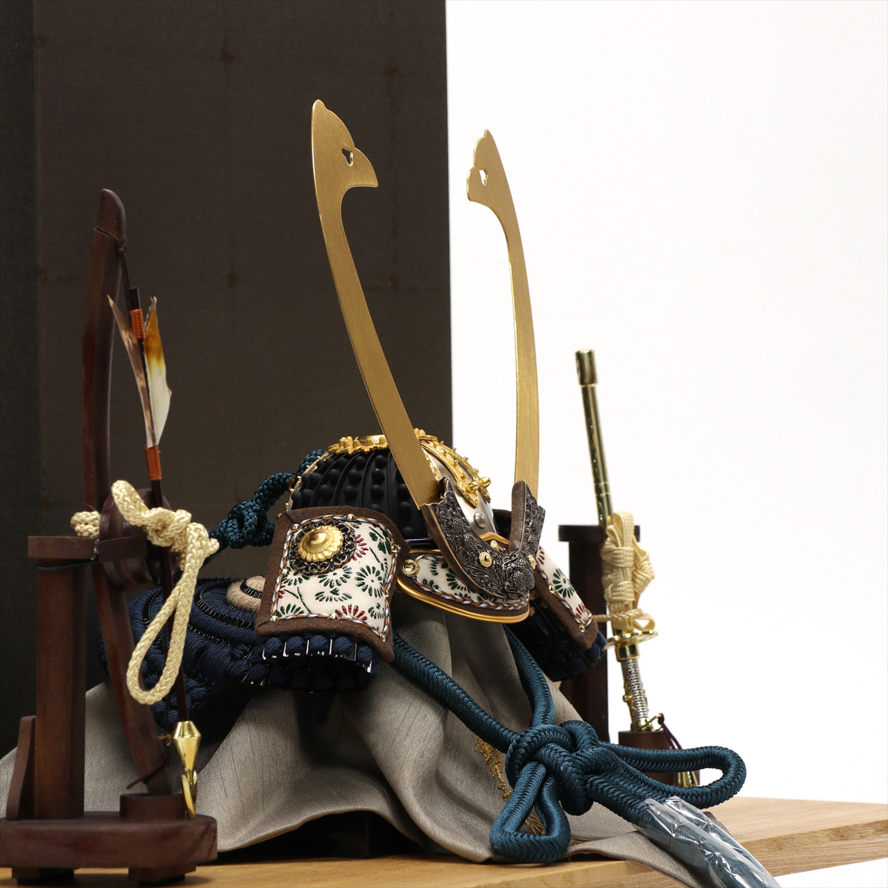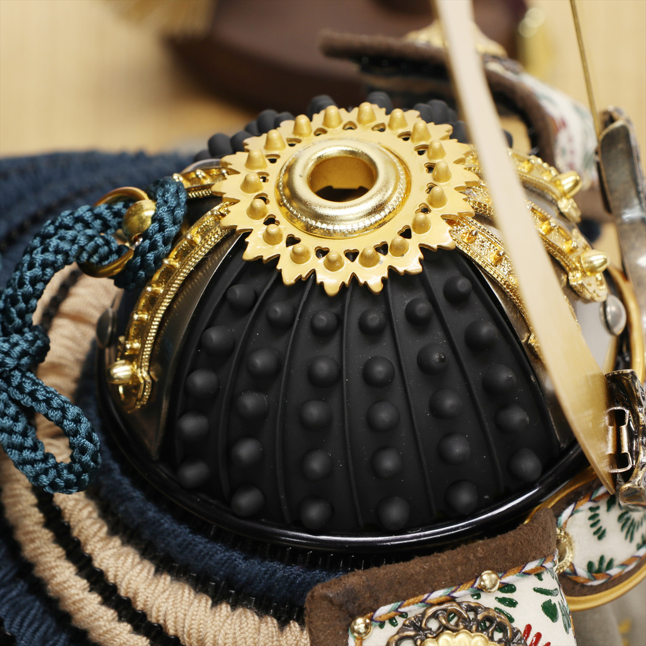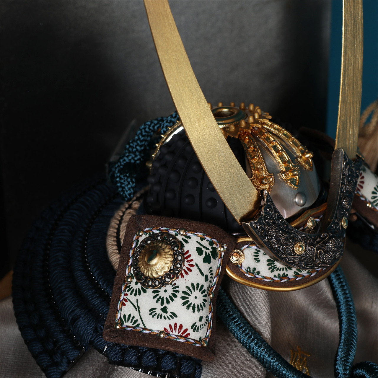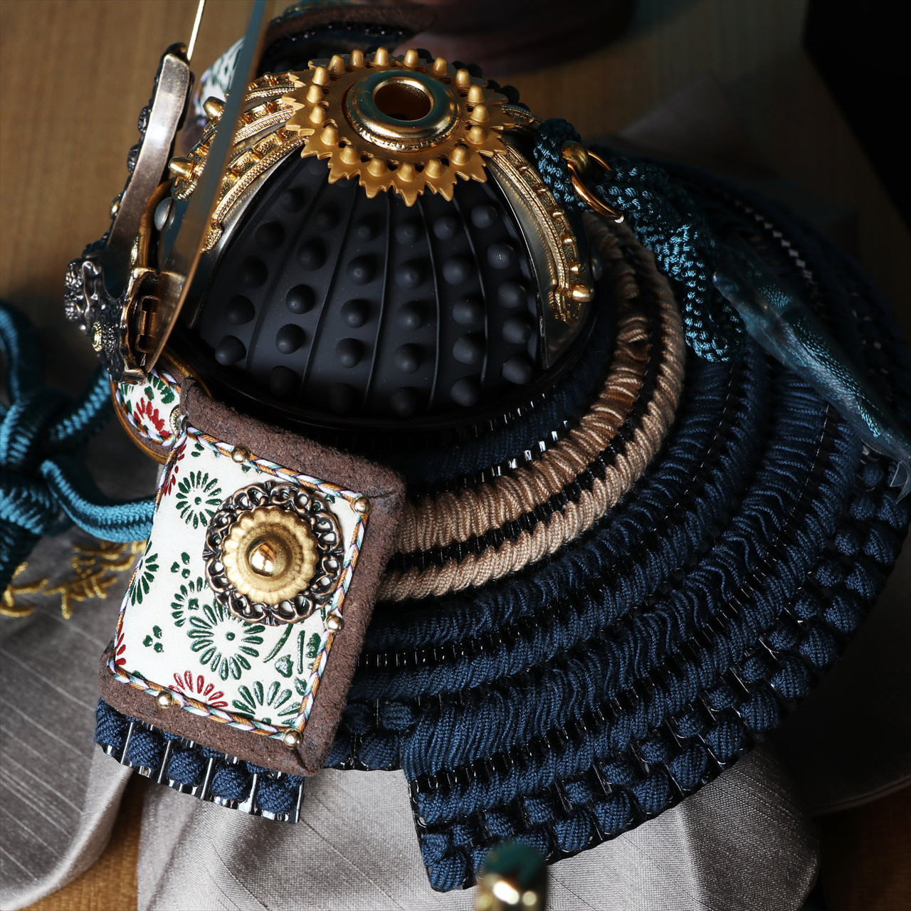 鈴甲子雄山 1/5 兜飾り 暁 紺糸威 「碧天に雷」